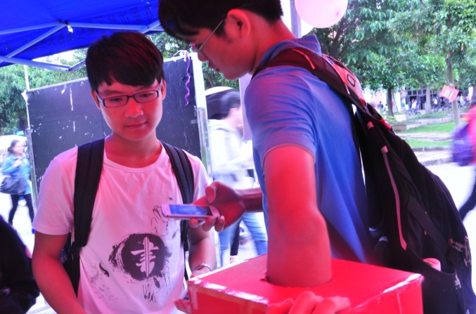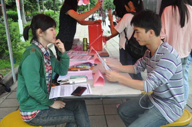 坐镇摊位的同学也没闲着,咨询组的同学耐心地介绍着活动内容,解答同学的疑问,劝导同学参加我们的活动。