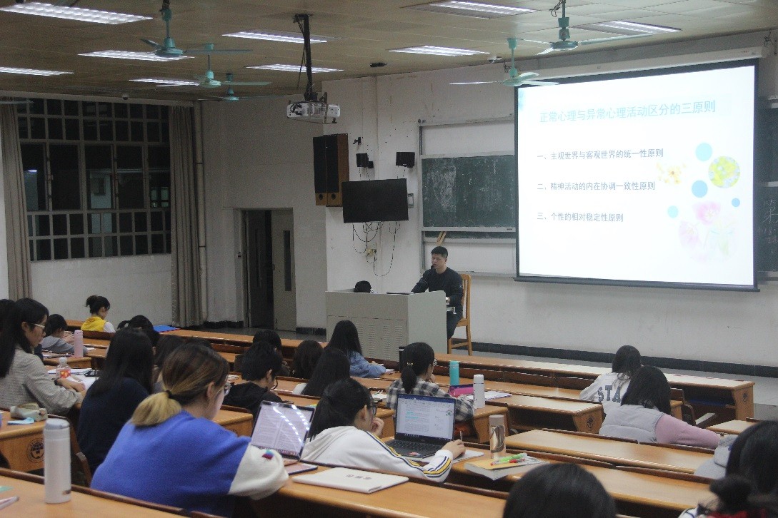 11月30日中心老师龙贵瑜在北校为同学们讲解如何区分正常与异常心理
