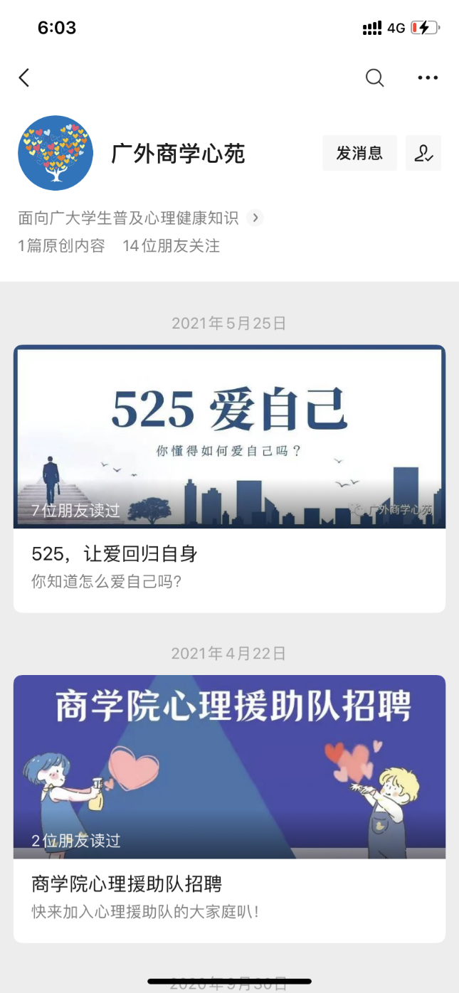 4月学生工作队伍走访学生宿舍,关心学生心理状况,学院组织开展“心晴树洞“分享活动,收到各年级50余条情绪调节分享内容,鼓励学生与情绪做朋友,记录自己的情绪,有助于更好地认识自我;分享自己的心情,能够敞开心扉,学会更好地调节自己的情绪。5月25日学院心理公众号发布”525爱自己“相关推送,鼓励学生学会认识自己、学会接纳自己、爱自己。