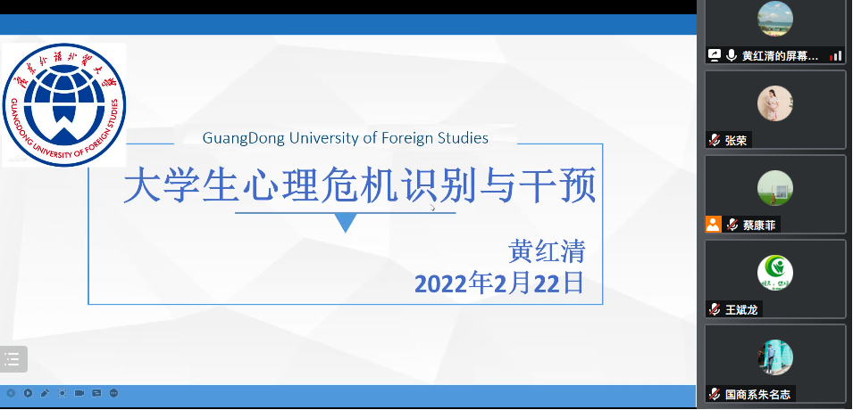 为进一步加强我校辅导员队伍专业化职业化建设,提升大学生心理危机干预工作的科学性和规范性,2月22日下午,我校心理健康教育与咨询中心副主任黄红清为我校学工队伍作《大学生心理危机的识别与干预》专题讲座。各学院党委副书记、全校专兼职辅导员聆听讲座。
