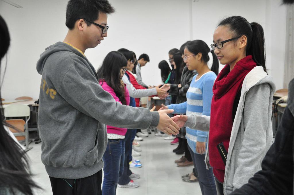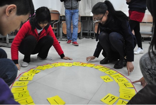 首先,大家进入了热身游戏——握手游戏。在这个项目中,当培训师不直接说数字而是通过简单的数学式说出数字的时候,大家都反应不过来,对培训师的小调皮感到无奈而好笑,也有人成功握住别人的手的时候不自觉地激动地跳了起来大笑,大家都在笑声中体验了这个游戏,气氛很活跃。