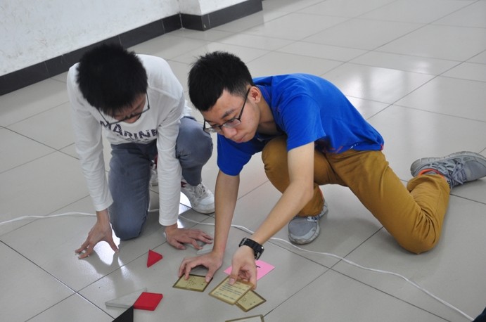 最后就是七巧板。刚开始,大家拿到七巧板各顾各的,场面十分混乱,还不断地犯规,可是在领导队的带领之下,大家都逐渐完成了自己的任务。因为提前完成了挑战,培训师还再加了一个任务给学员们。大家的表现都十分出色,让培训师们赞赏。