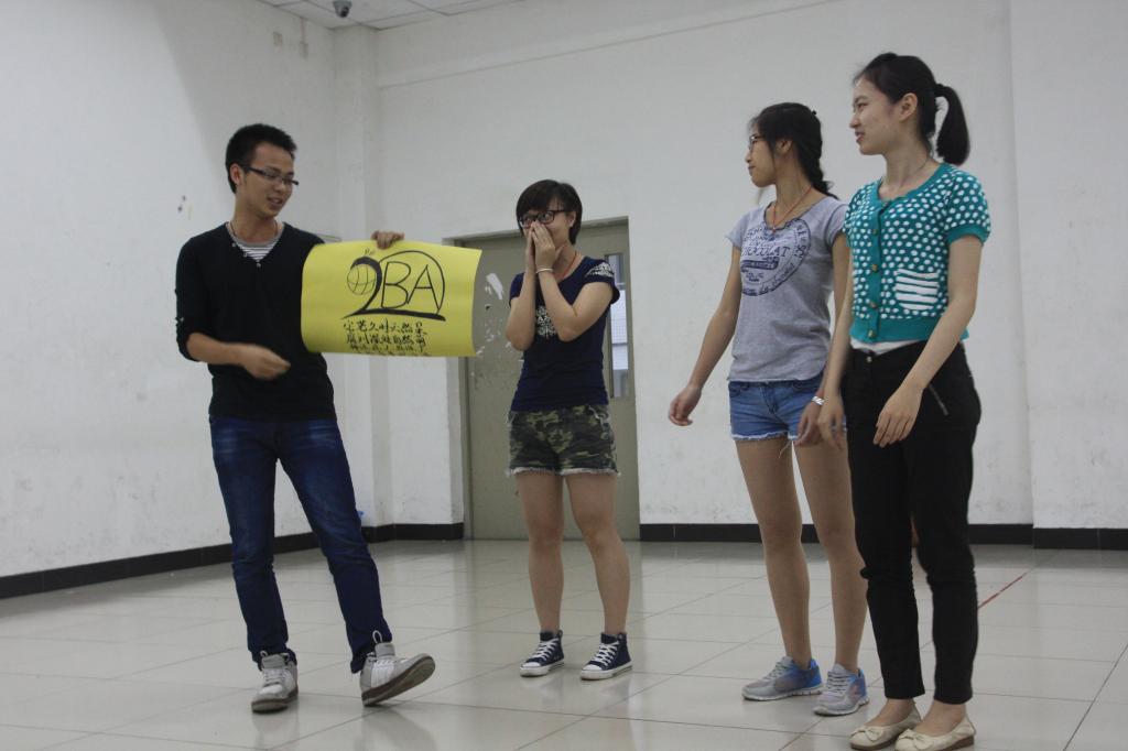 在团队建设中,每个队伍为了使自己的团队展示更加有趣更加吸引人,绞尽脑汁地想了有创意的点子。“2BA”队的队名取自“财管2班”和“NBA”,创意十足。“蓝精灵收衣服小分队”应了窗外下大雨的景,用表演的方式提醒同学们收衣服。“3+2哈哈哈”队则用《西游记》的经典片段演绎了西天取经的有趣故事。最后,“男男女女”队用歌曲串烧的队歌结束了这一次团队建设。