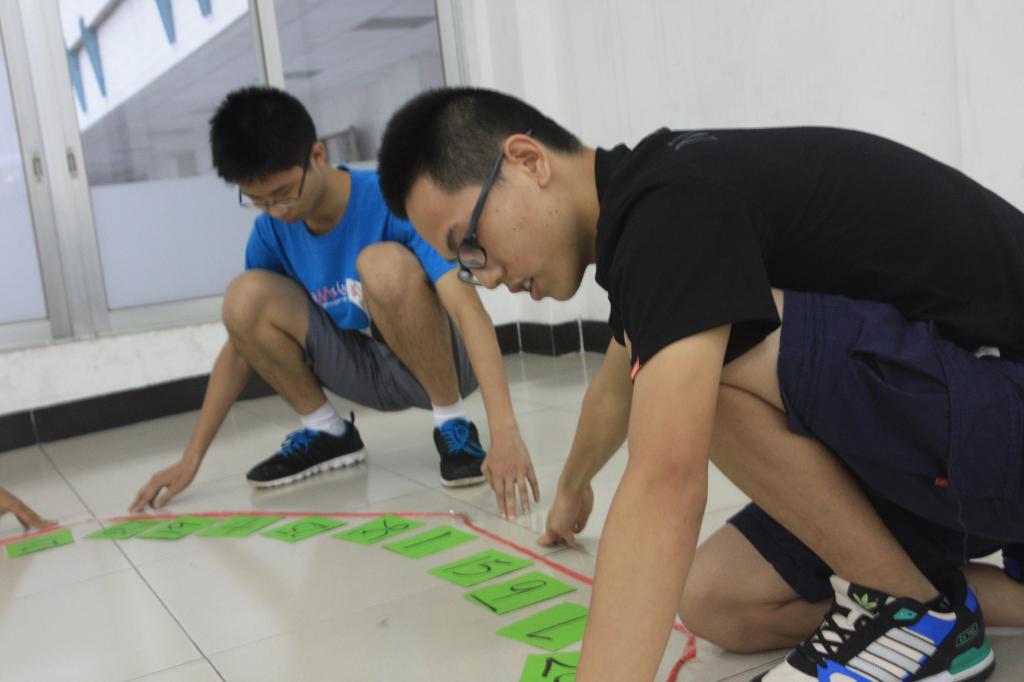 握手游戏和“驿站传书”两个热身游戏将教室的气氛炒热,让大家进入了培训的状态。特别是在进行“驿站传书”时,同学们在热烈的讨论中决定了各自队伍的通关密语,在培训师的“刁难”下,尽力完成任务。