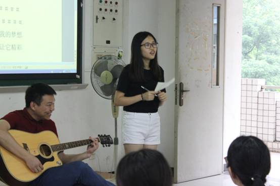 在第二个环节里,老师抱起吉他教大家唱歌。不过,大家唱的歌曲的歌词是不完整的,需要成员们回顾自己的经历然后填写再唱出来。老师是用这种形式引导他们直面自己的生活,学会与别人分享自己的生活和想法。这个项目是庄老师自己通过观察生活想出来的,是原创的。庄老师也鼓励素拓成员多去观察生活,然后进行创新,想出更好的项目来。