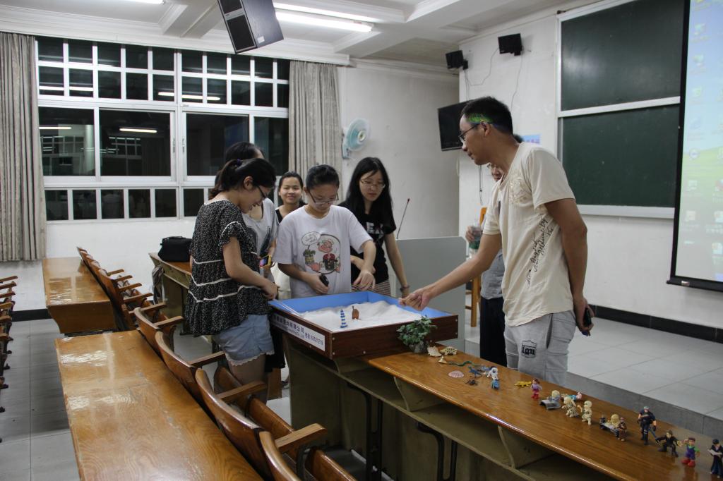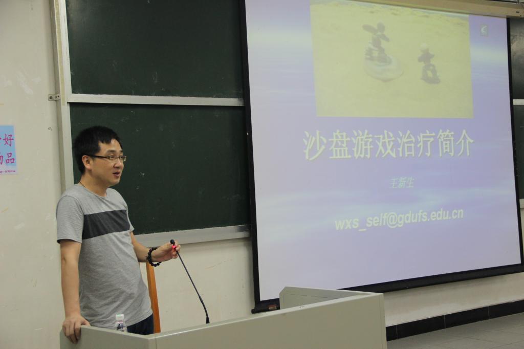 5月16日晚7点,广东外语外贸大学专职心理辅导老师王新生老师在第二教学楼114课室开展了“沙盘游戏中的自我”的专题讲座,旨在帮助同学们在了解沙盘游戏的同时更好地认识自我。