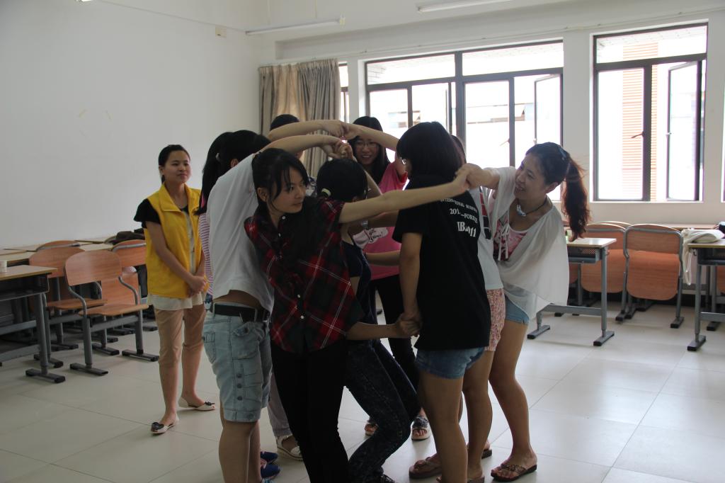 本次活动以一个轻松愉快的热身游戏开场,大家在热身游戏中熟络起来,气氛也随着活跃起来。随后的团队建设活动更是让队员们在构建良好团队的同时,对彼此更加熟悉,找到团队归属感。随之开展的“解手环”和“打倒终极大boss”游戏让同学们在享受团体游戏快乐的同时,也让他们在游戏中对处理复杂繁多的任务和自身的拖延习惯有了新的认识和反思。