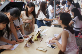 可能是觉得摊位上的游戏标题很有趣,也有可能是看到在游戏中玩得不亦乐乎的同学,路人也纷纷被吸引了过来。开始只是为了集齐四个游戏的书签来抽奖,玩着玩着,同学们都沉浸在心理游戏的氛围中,纷纷反映在游戏中不仅开动了脑袋,还了解到了心理小知识,十分有趣。