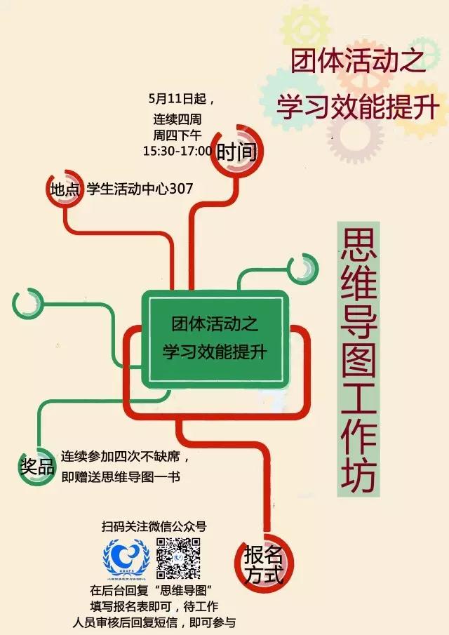 关注广外心理健康教育与咨询中心微信公众号,并在后台回复“思维导图”,填写问卷(姓名、学号、学院、班级、电话、微信号、能否坚持连续4周以及参加这个活动的目的)即可参与。