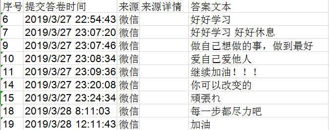 日语1705班发布关于“新学期,新规划”线上调查问卷,以鼓励同学们积极规划自己的大学生活并了解同学们自我规划的相关情况。以下是同学们对问题“新学期,对自己有什么想说的?”做出回答。