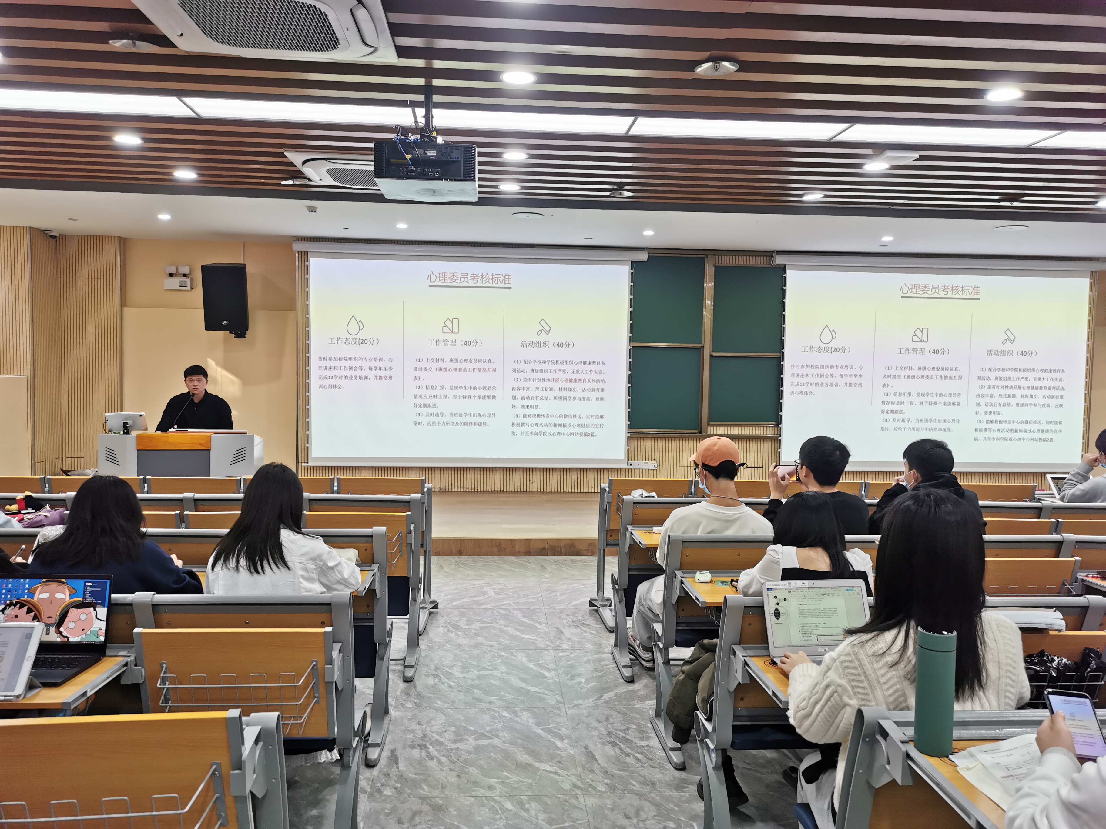 阎茹老师、王新生老师和曾海宽老师分别给同学们介绍了处于大学阶段的我们所普遍面临的心理问题以及其表现形式,结合期末周的情况详细讲解了“焦虑”这一情绪。老师们强调各心理委员应注意识别情绪和行为出现异常的同学,并介绍了相关应对措施提高其处理能力。