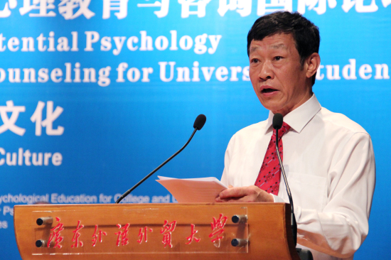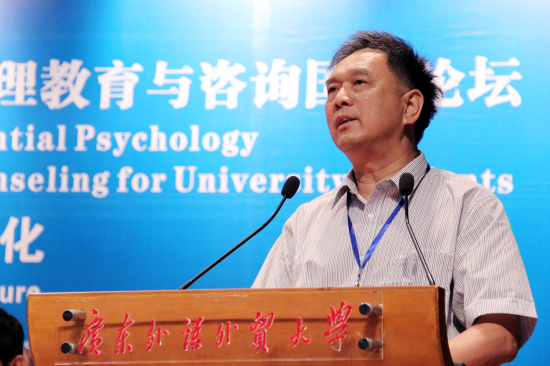 本次论坛由广东省高校学生心理健康教育专家指导委员会、广东省高校心理健康教育与咨询专业委员会与我校共同主办,国际存在-人本心理学研究所、大学生心理教育与咨询国际论坛协作会协办,并获得省教育厅的大力支持。广东省教育厅副巡视员陈健、专家指导委员会主任李小鲁、咨询专业委员会主任邱鸿钟、广东金融学院副校长暨专家指导委员会常务委员穆林、美国心理学会人本主义心理学前任分会主席Louis Hoffman、法国大学生健康基金会主席Philippe Colin-madan及美、英、法、荷兰、泰国等国家和港澳台等地区的三十余名专家学者与国内外各高校学生工作负责人、大学生心理健康教育工作者和学生代表等两百余人出席开幕式。仪式由我校副校长许国彬主持。